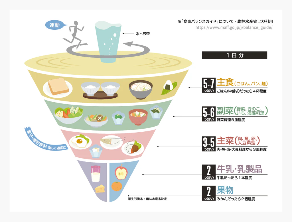 1)厚生労働省、農林水産省. 「食事バランスガイド」.