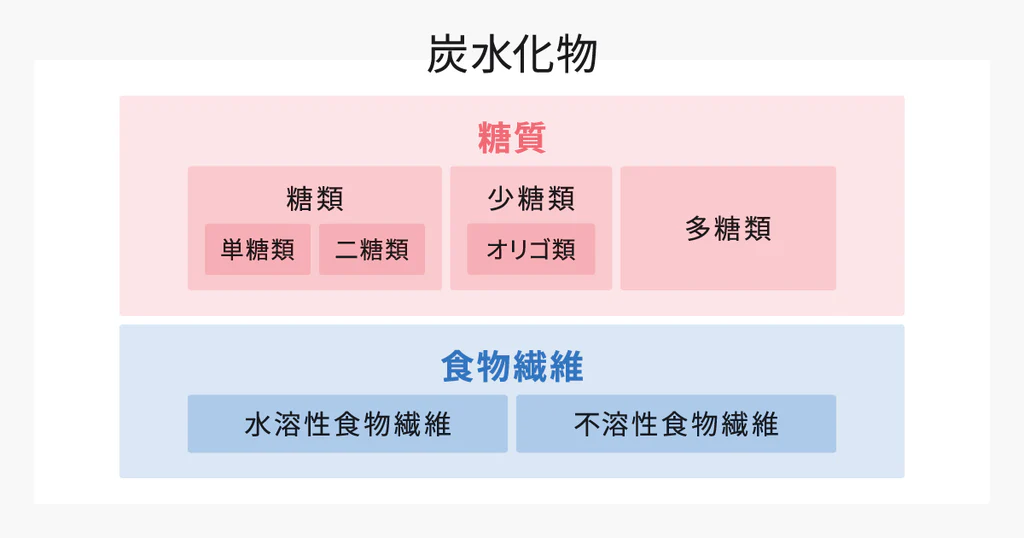 炭水化物は、脂質、タンパク質とともに3大栄養素のひとつで、主に身体のエネルギー源となる大切な栄養素です。また、易消化性炭水化物(糖質)と難消化性炭水化物(食物繊維)に分けられます。